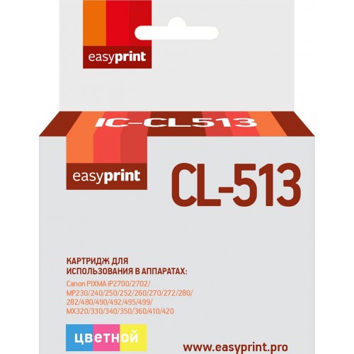 CL-513 Картридж EasyPrint IC-CL513 для Canon PIXMA iP2700/MP230/260/280/480/MX330/360/410, цветной