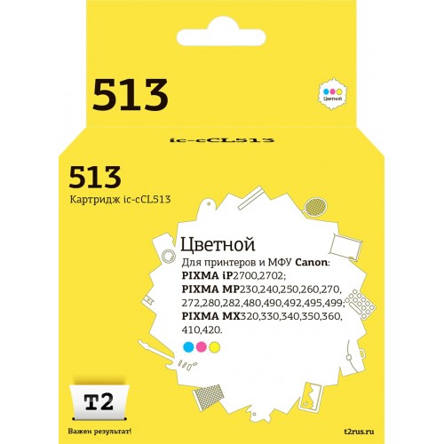IC-CCL513 Картридж T2 для Canon PIXMA iP2700/MP230/240/250/280/480/490/MX320/360/410, цветной