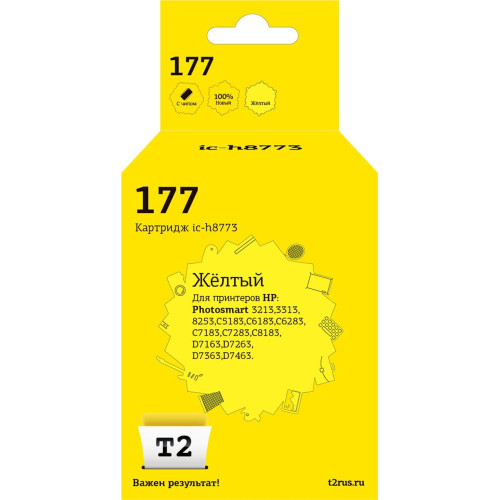 IC-H8773 Картридж T2 №177 для HP Photosmart 3213/8253/C5183/C6183/D7163/D7463, желтый, с чипом