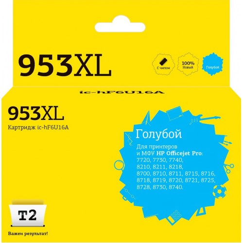 IC-HF6U16A Картридж T2 №953XL для HP OfficeJet Pro 7720/7730/7740/8210/8710/8720/8730/8740, голубой