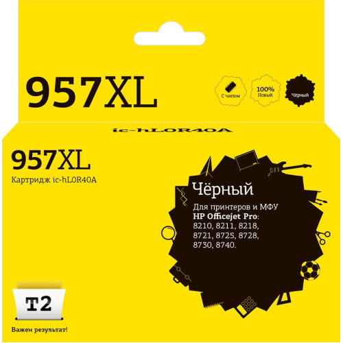 IC-HL0R40A Картридж T2 №957XL для HP OfficeJet Pro 8210/8720/8725/8730/8740, черный